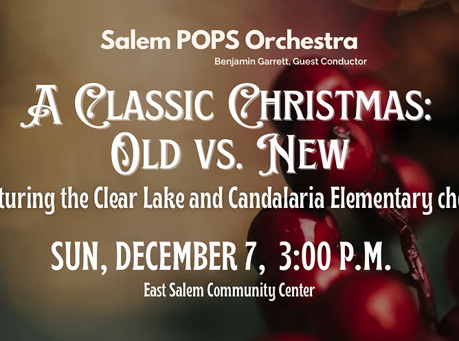 Joining us to ring in the Holidays are the choirs from Clear Lake and Candalaria Elementary schools. We will also be joined by special guest Hale Thornburgh narrating “‘Twas the Night Before Christmas” with orchestra accompaniment. We have received some news from the North Pole that a special guest might be making an appearance as well.