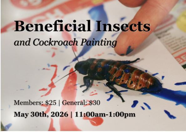 During this workshop, we will learn all about the good insects in your garden and how to encourage their presence. We know about how great ladybugs and praying mantids are, but did you know there are many more awesome critters out there that can help eat those pesky caterpillars and aphids? We will check out some pre-collected beneficial arthropods, and then take a little field trip to see what we can find around the garden. Finally, we will paint with giant Madagascar hissing cockroaches!
